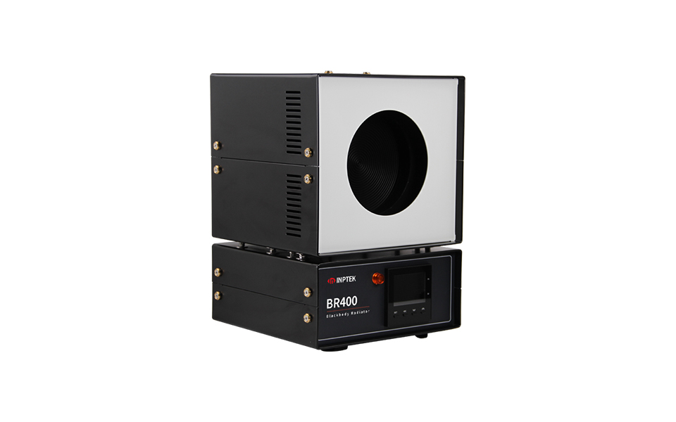 BR400型黑體校準源由附罩,輻射面,加熱體精密控溫測量儀構成,輻射面用導熱較好的鋁材制成,盤上刻有同心V型槽,在輻射面和附罩表面采用特殊的納米涂料噴制處理,發(fā)射率高,發(fā)黑層均勻,不易變色脫落。控溫采用PID控制技術,精度高,均衡性和穩(wěn)定性好,并具有溫度修正功能。